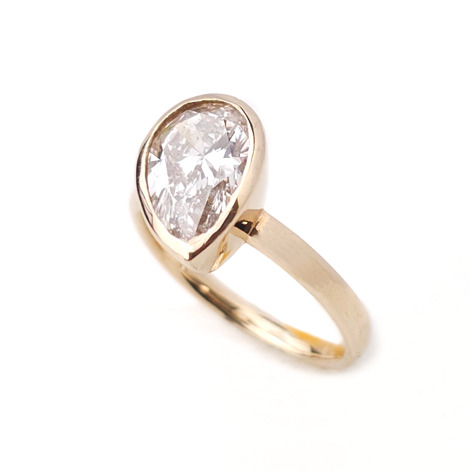1.5ct Pear shaped Diamond - Bezel set Gold ring