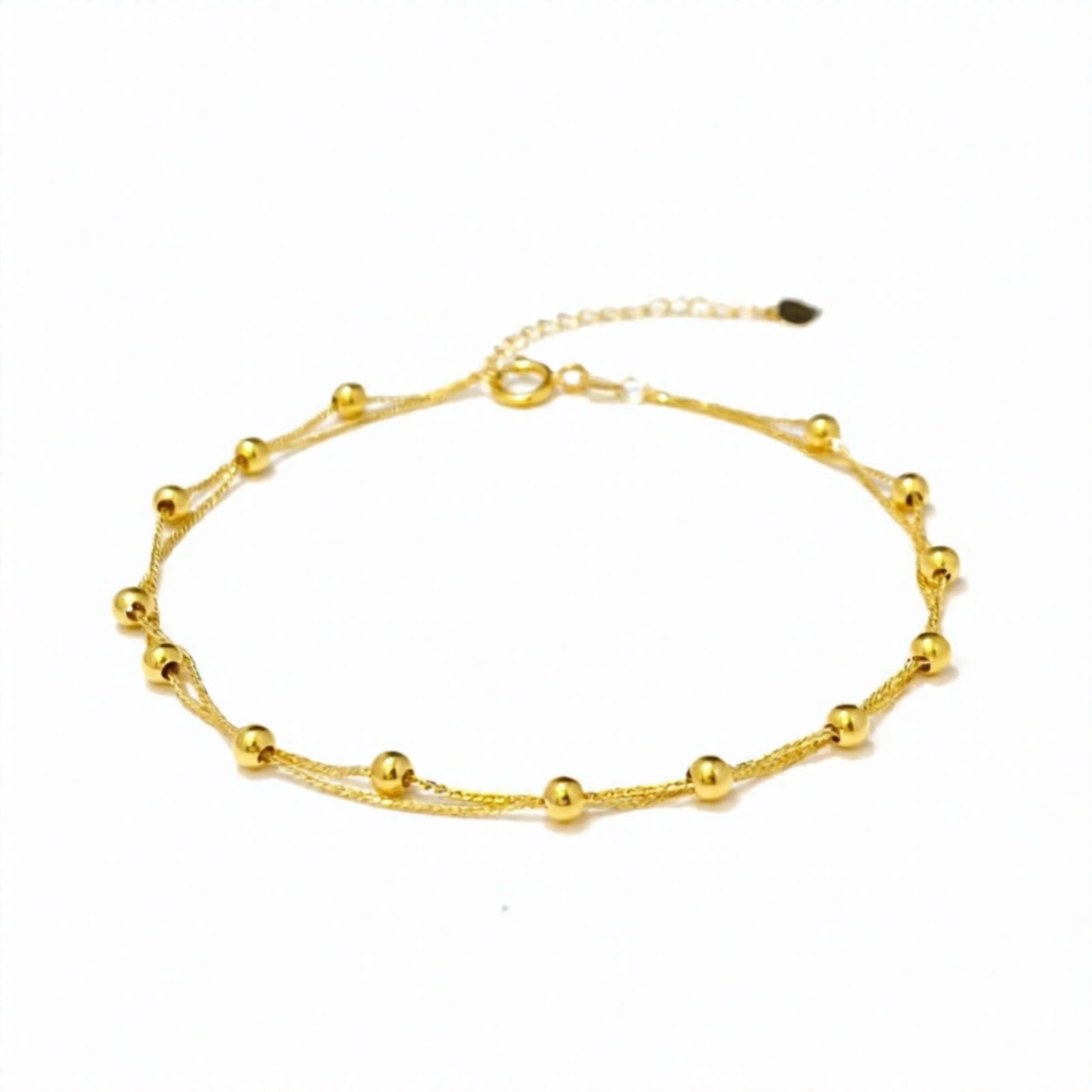 Design: Delicate double chain with polished gold bead accents