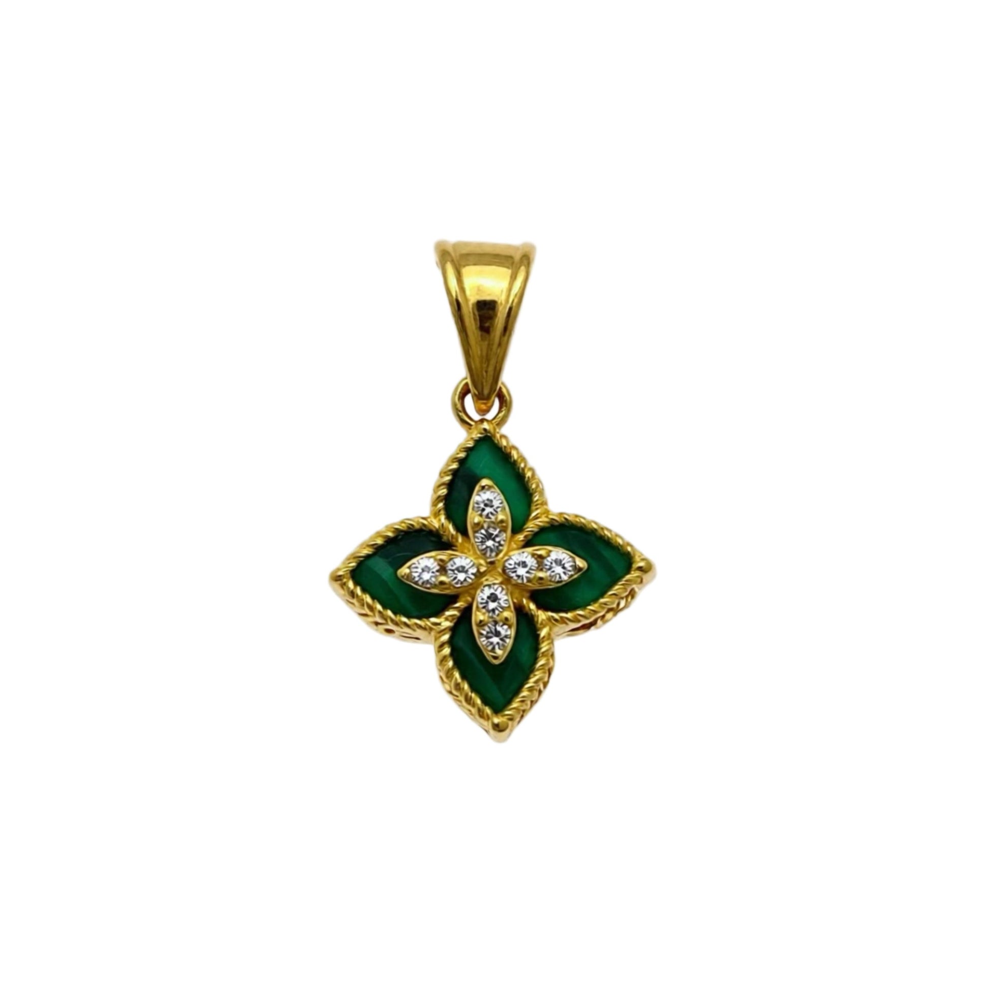 18K Gold Malachite Floral Pendant – Roberto Coin Inspired Luxury